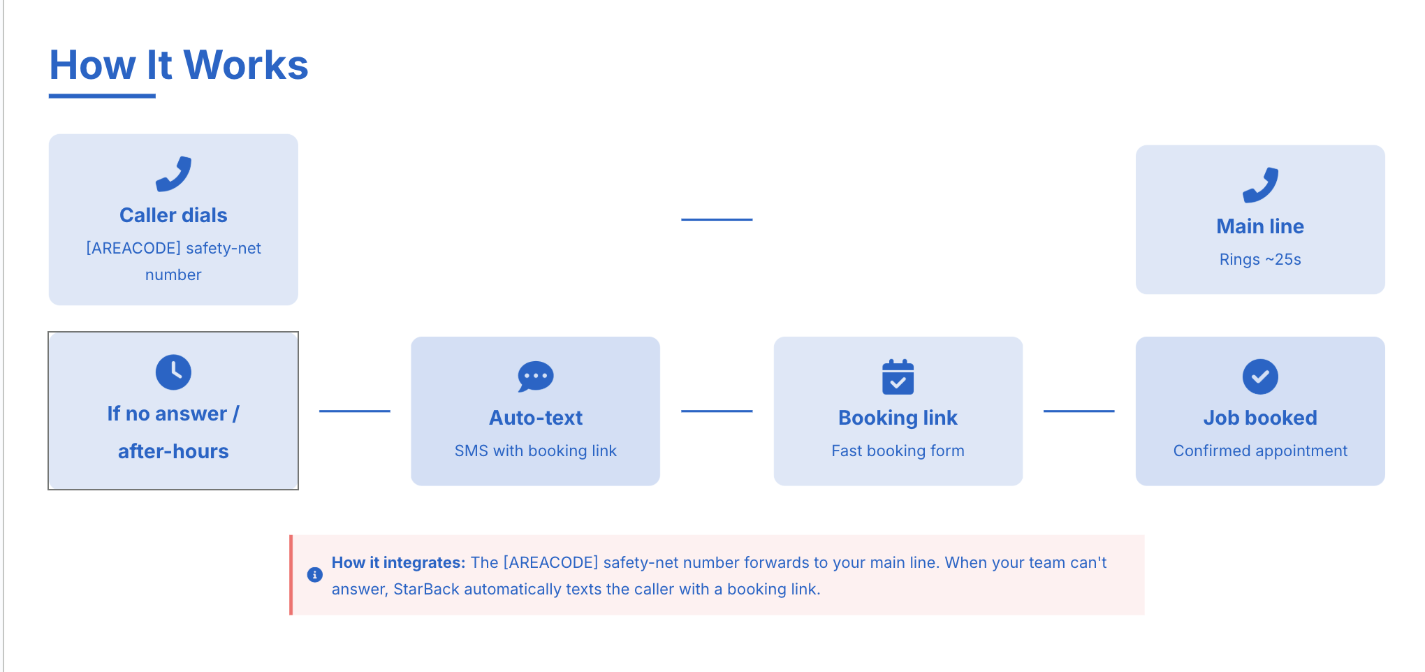 Starback instantly texts customers who call your business but don’t get an answer — turning missed calls into confirmed appointments..